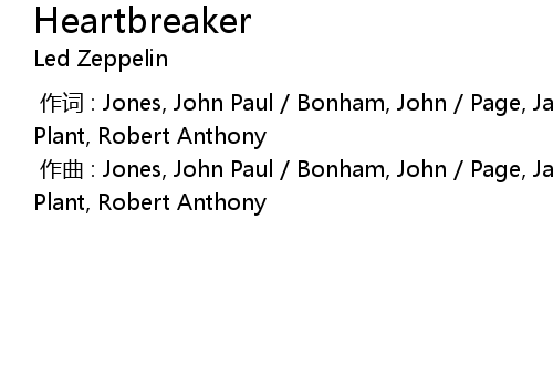 | [00:00.000] | zuo qu : Jones, John Paul Bonham, John Page, James Patrick Plant, Robert Anthony |