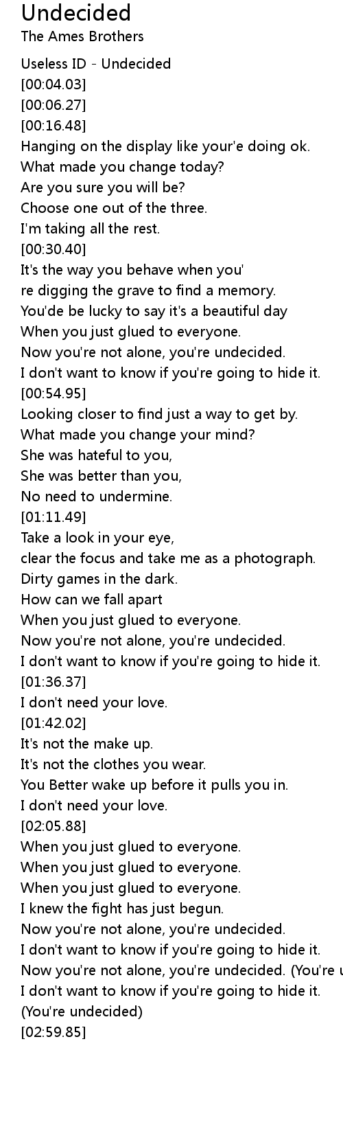 Now you're not alone, you're undecided. (You're undecided) |