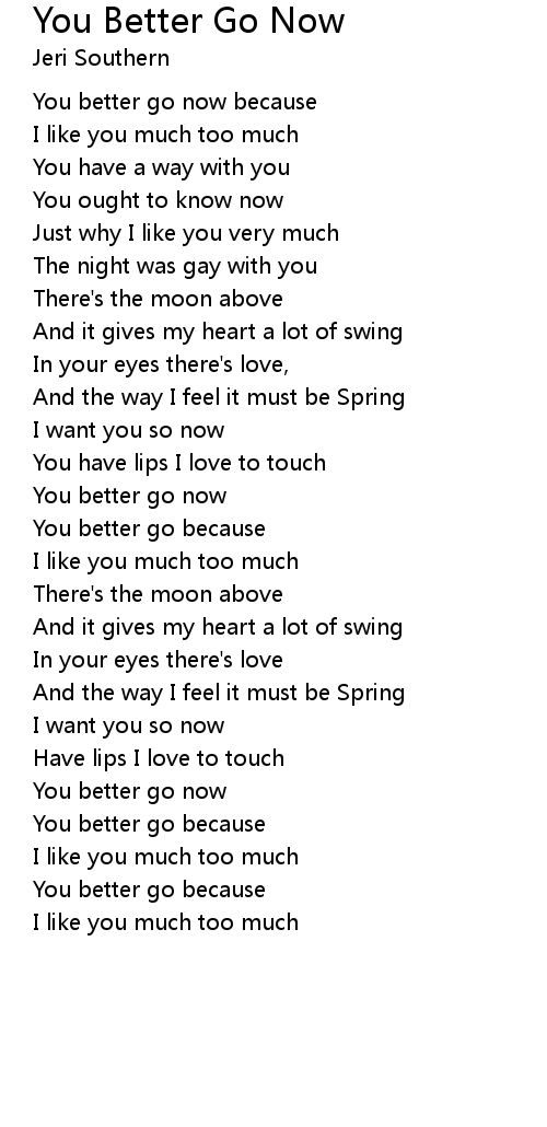You better go now because |