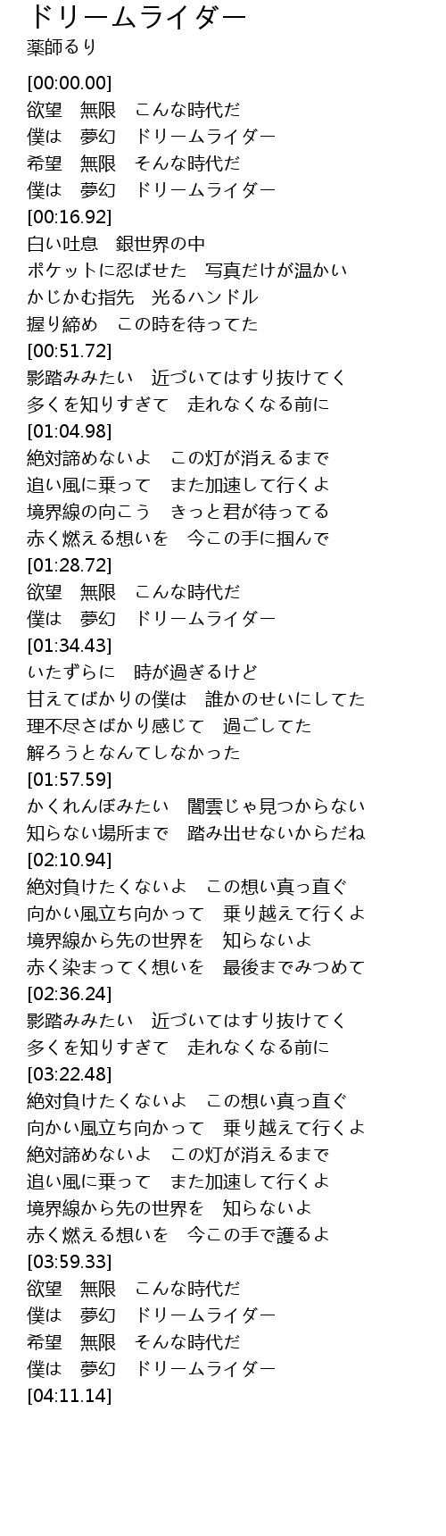 | [04:02.37] | 僕は 夢幻 ドリームライダー |