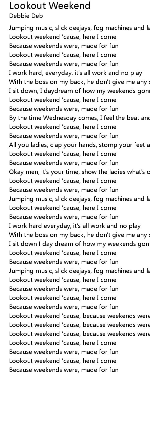 By the time Wednesday comes, I feel the beat and I wanna have fun