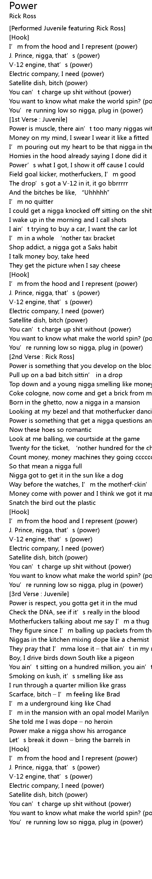 | Power is something that get a nigga questions answered | |