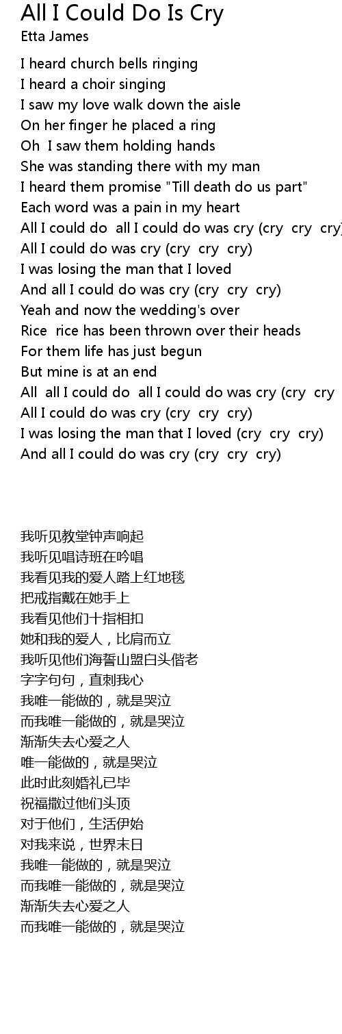 All all I could do all I could do was cry (cry cry cry) |