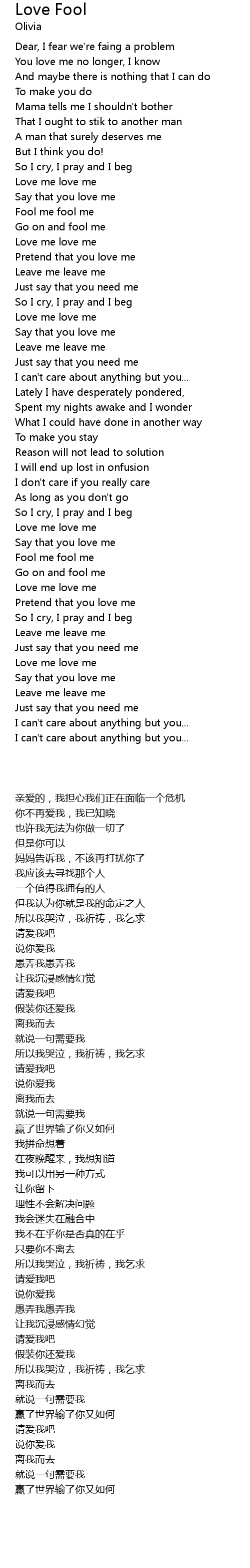 So I cry, I pray and I beg |