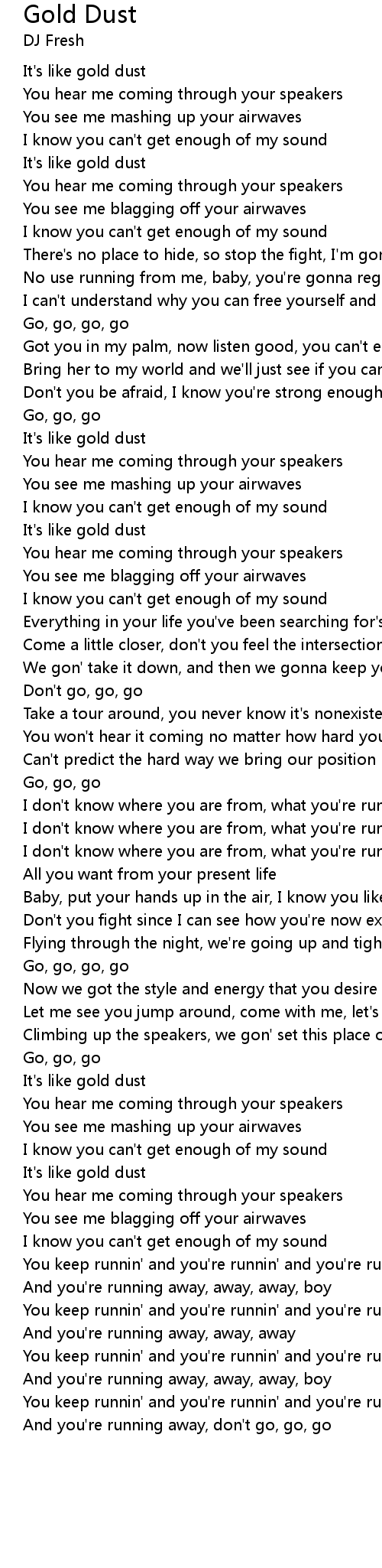 And you're running away, don't go, go, go |