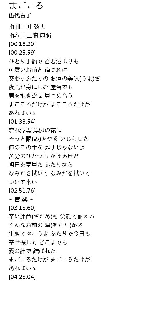 | [01:19.66] | まごころだけが まごころだけが |