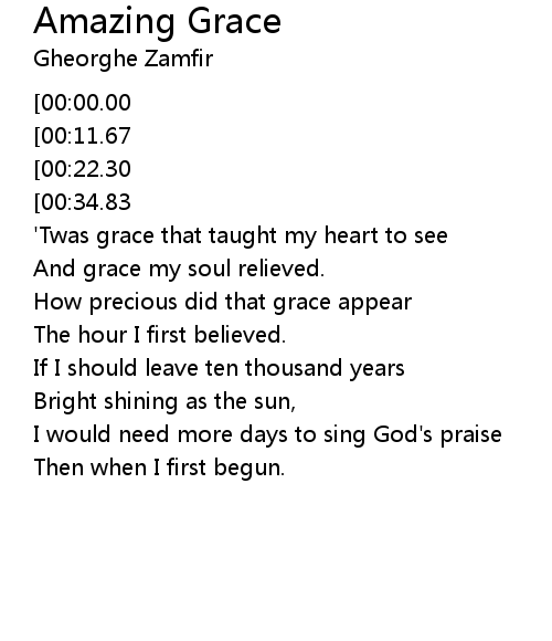 [02:18.92][00:00.00] Amazing grace, how sweet the sound