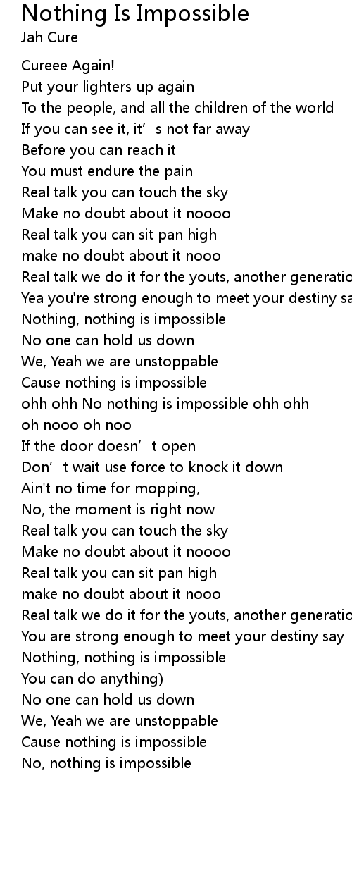 | ohh ohh No nothing is impossible ohh ohh | |