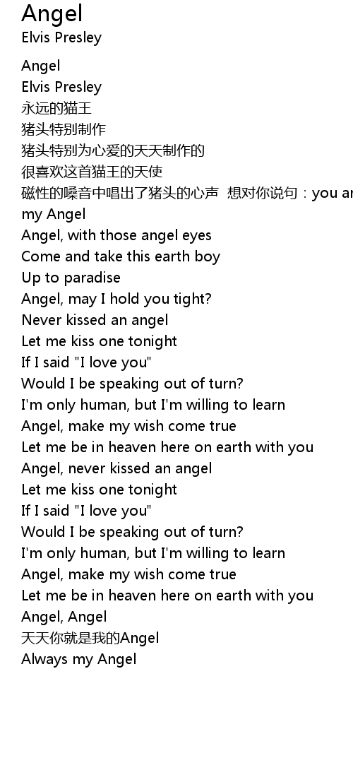 | [00:00.16] | 猪头特别为心爱的天天制作的 很喜欢这首猫王的天使 |