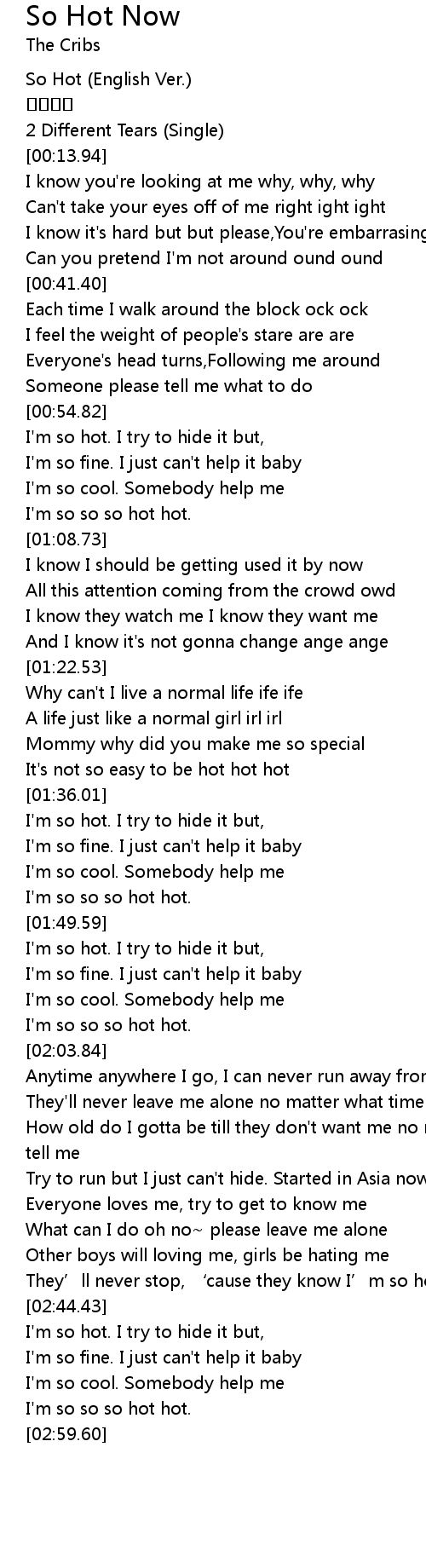 | [02:00.15] | I' m so so so hot hot. |