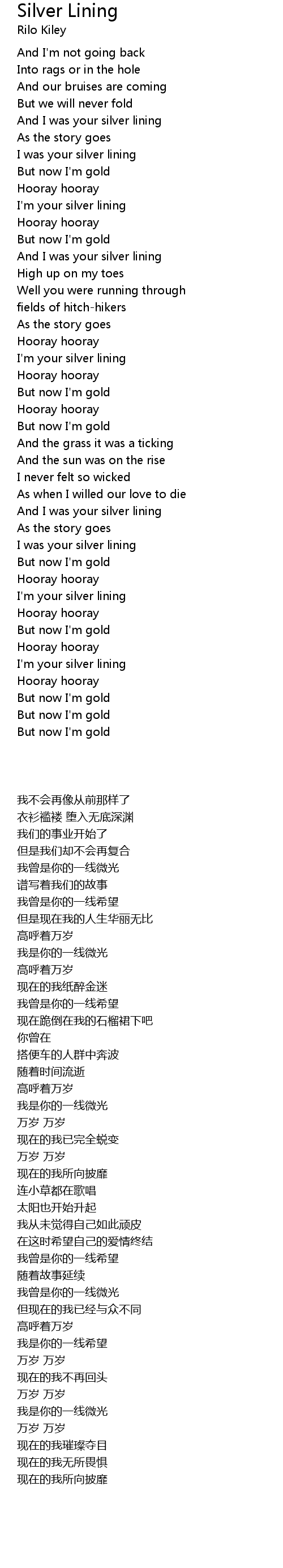 I'm your silver lining |