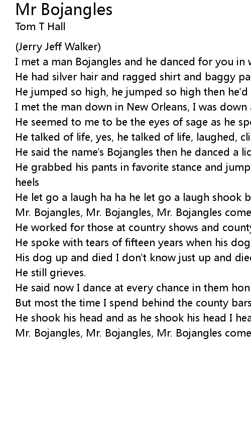 Mr. Bojangles, Mr. Bojangles, Mr. Bojangles come on dance... |