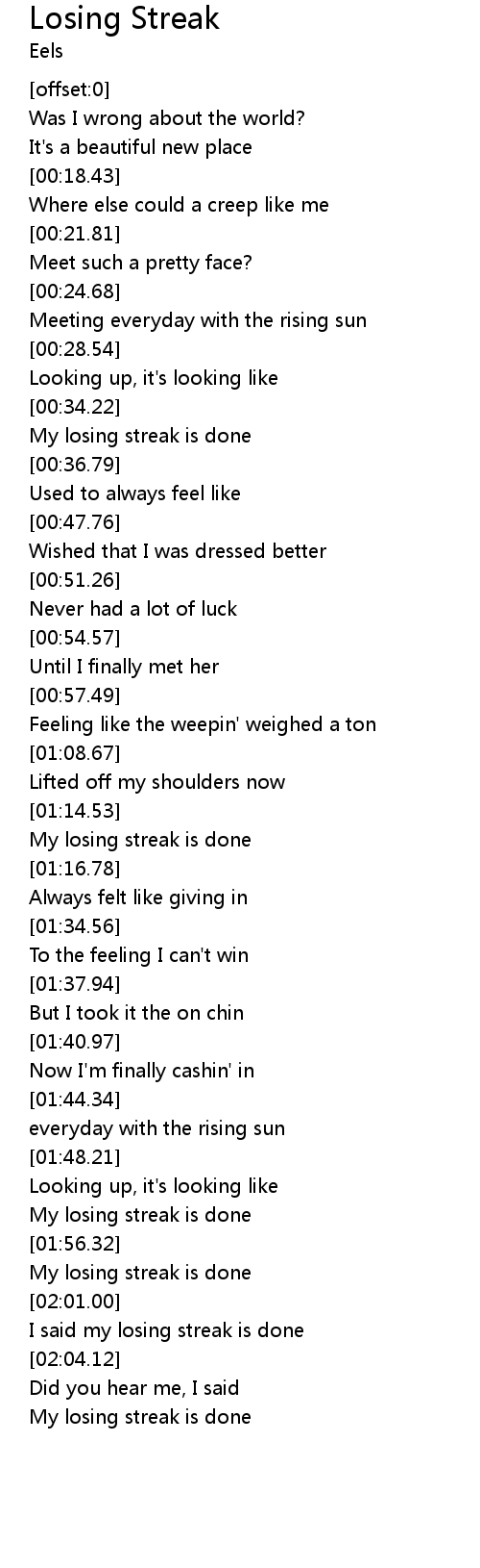 I said my losing streak is done |