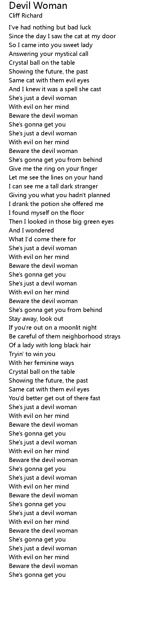 Devil Woman 歌词