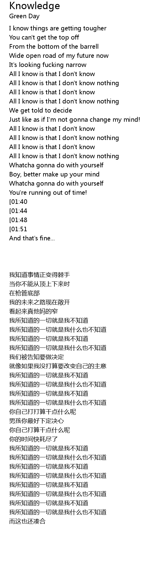 All I know is that I don't know nothing |