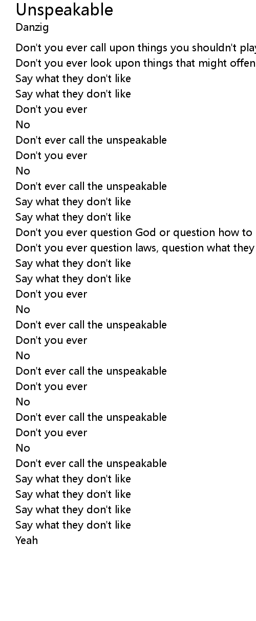 Don't ever call the unspeakable |