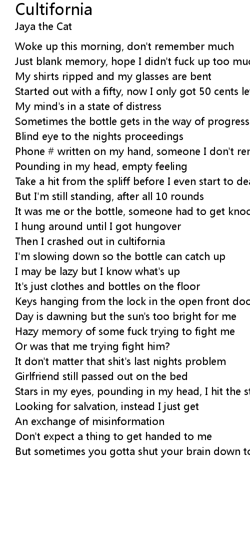 Then I crashed out in cultifornia |