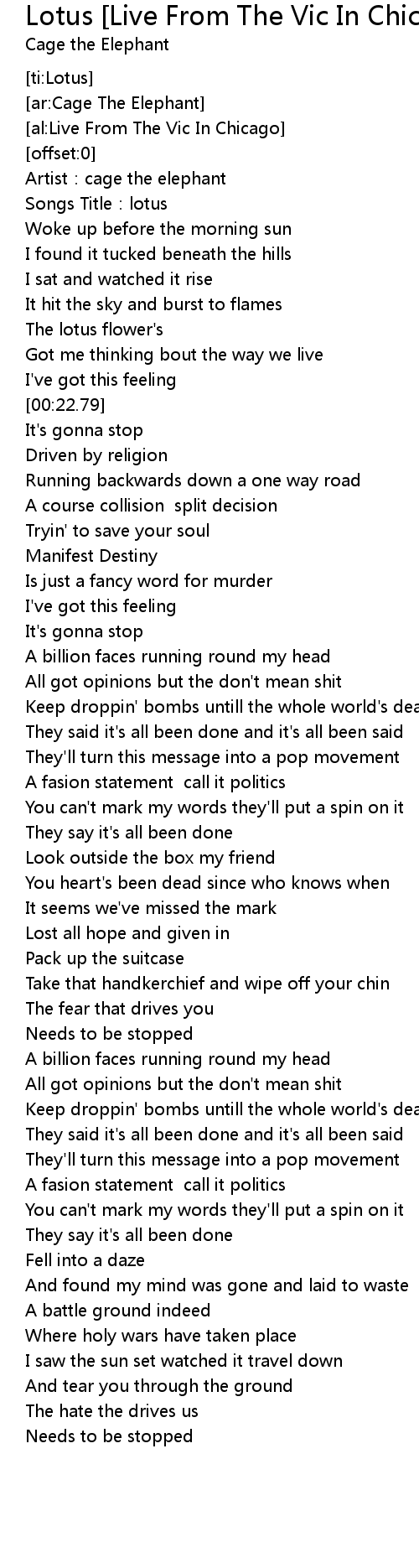 | [00:00.97] | Artist: cage the elephant |