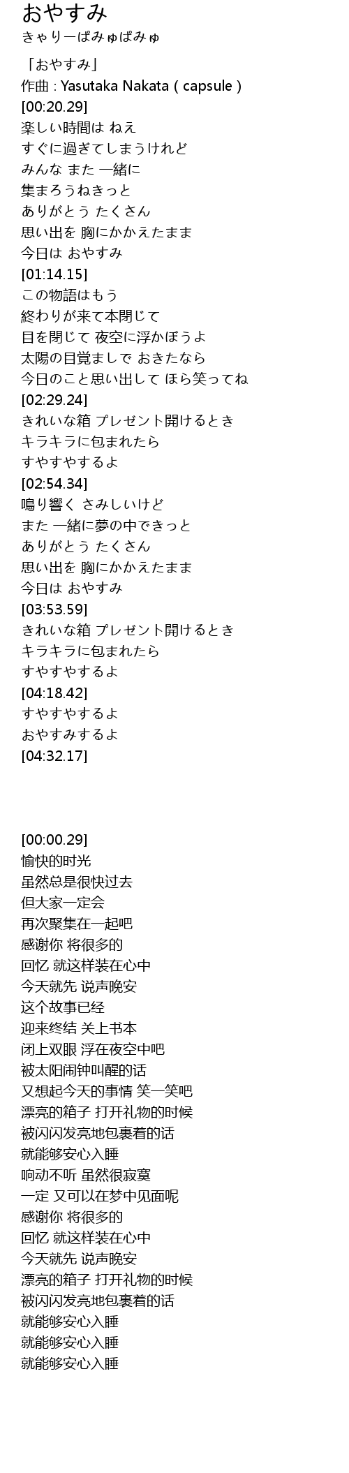 | [00:10.29] | zuo qu Yasutaka Nakata capsule |