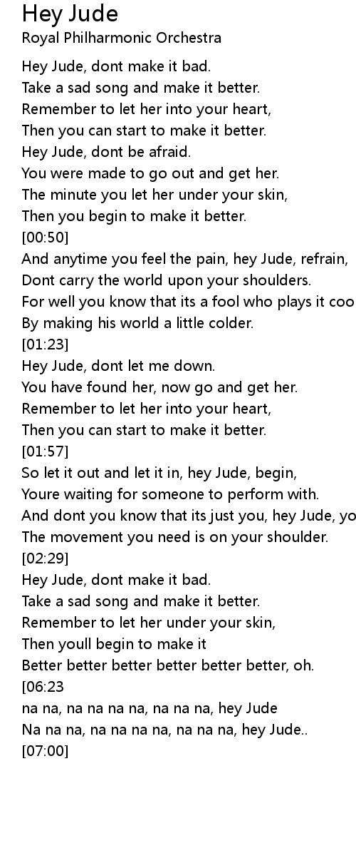 And dont you know that its just you, hey Jude, youll do, |