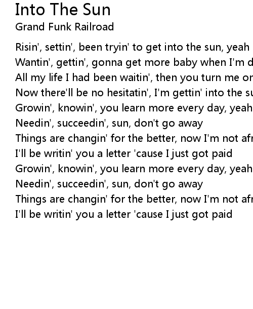 Now there'll be no hesitatin', I'm gettin' into the sun |