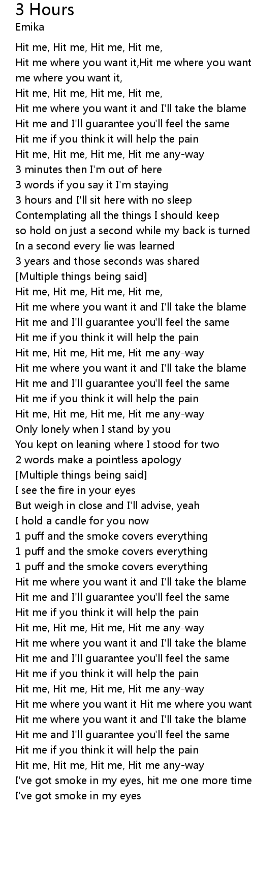 | Hit me, Hit me, Hit me, Hit me, | |