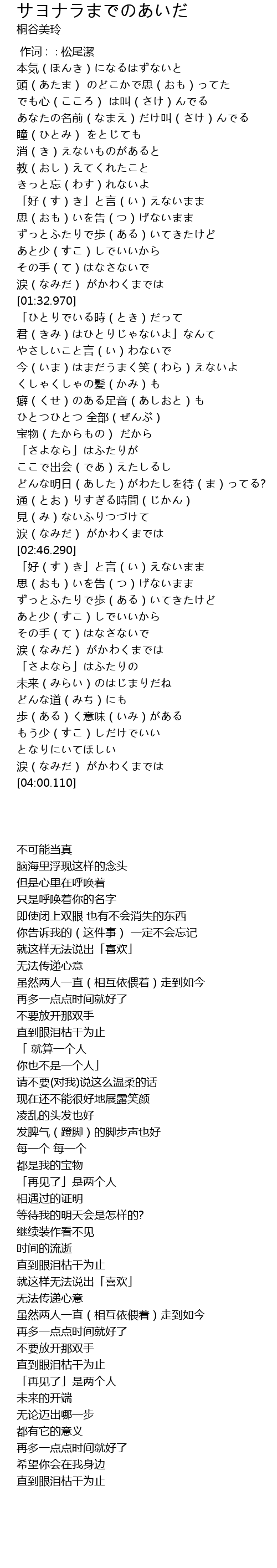 | [03:53.330] | 涙(なみだ) がかわくまでは |