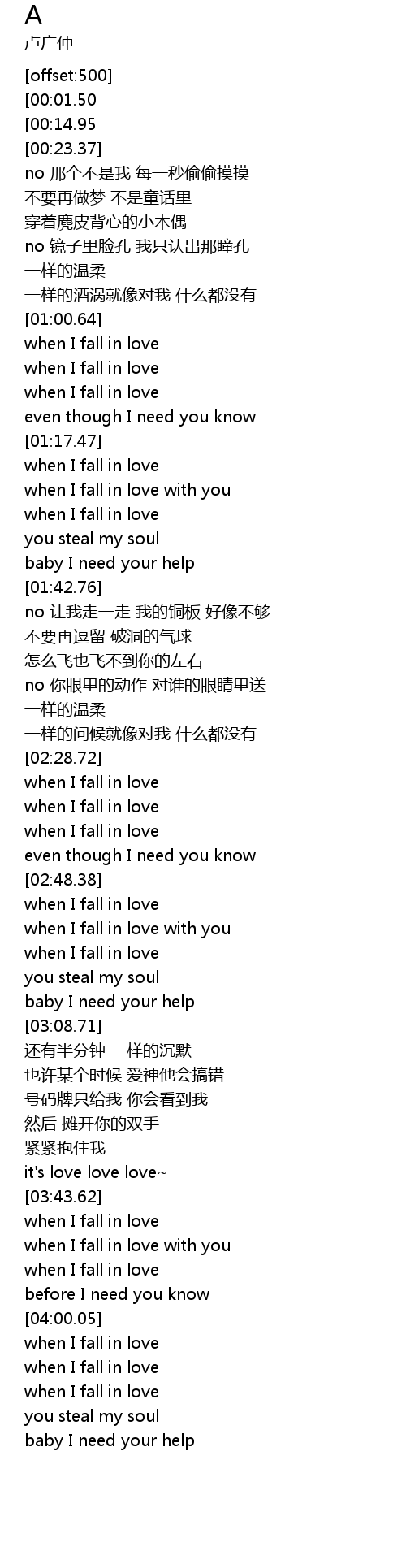 | [04:22.46][00:01.50] | lú guǎng zhòng pò qì qiú when I fall in love |