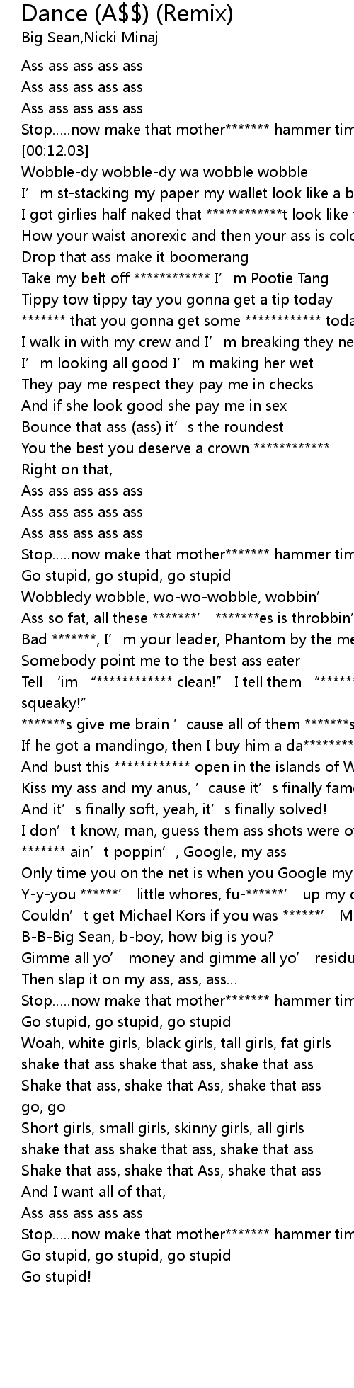 | [02:54.32] | Shake that ass, shake that Ass, shake that ass |