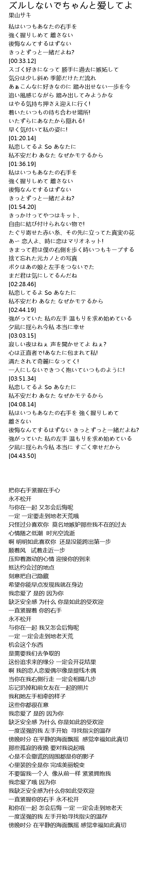 | [04:08.45] | 私はいつもあなたの右手を 強く握りしめて 離さない |