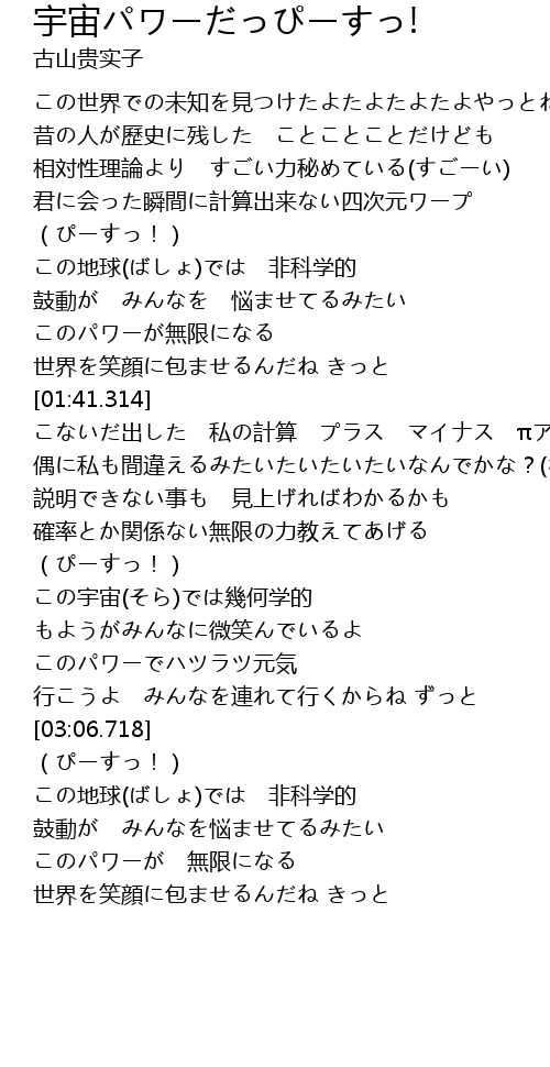 | [00:47.955] | 相対性理論より すごい力秘めている(すごーい) |