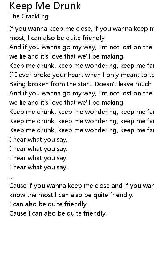 Keep me drunk, keep me wondering, keep me far enough away. |