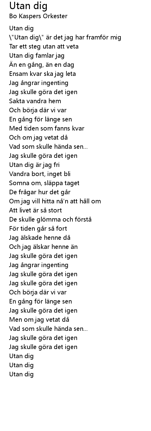 | " Utan dig" r det jag har framf r mig | |