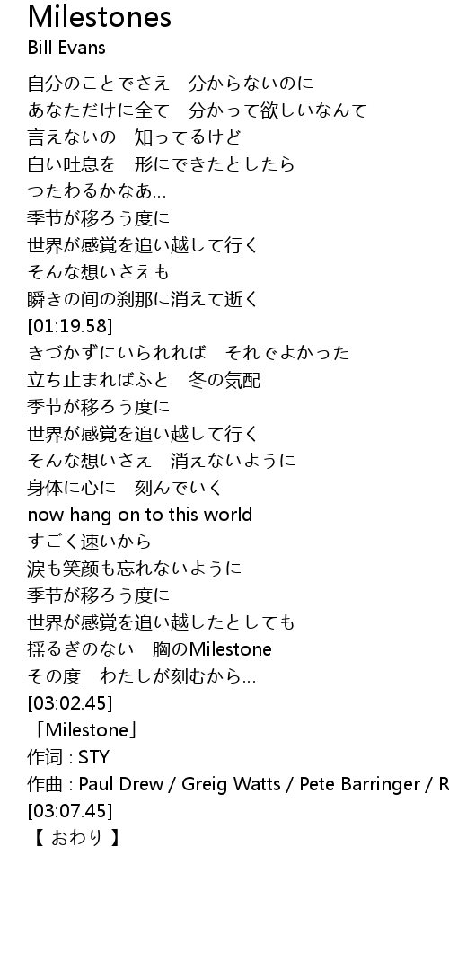 | [03:03.45] | 「Milestone」 |