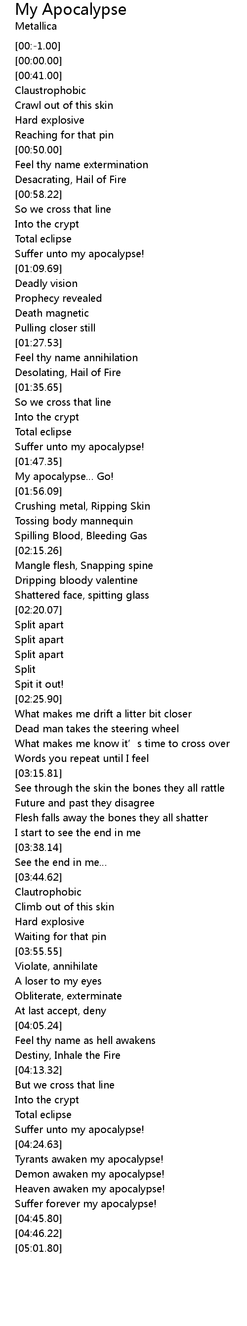 | [04:21.50] | Suffer unto my apocalypse! |