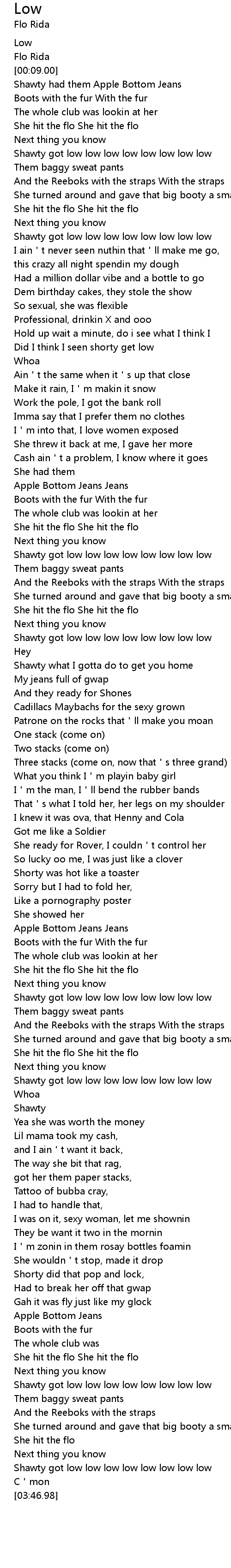 | [03:27.48] | Shawty got low low low low low low low low |