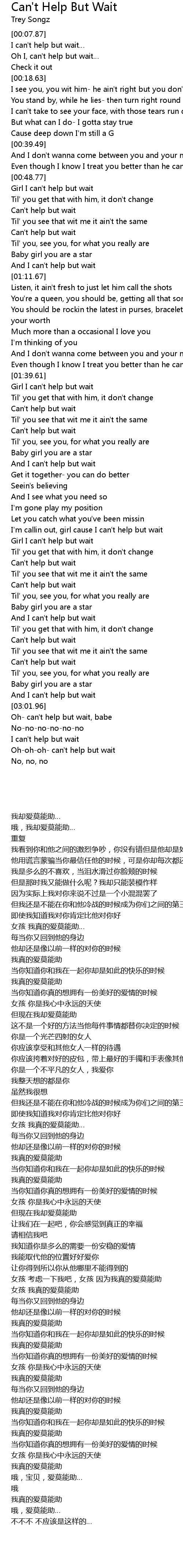 | [01:50.37] | Can' t help but wait |