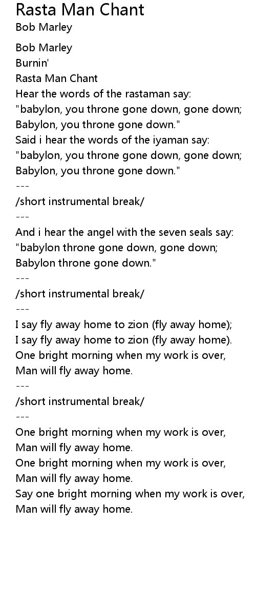 Rasta Man Chant 歌词