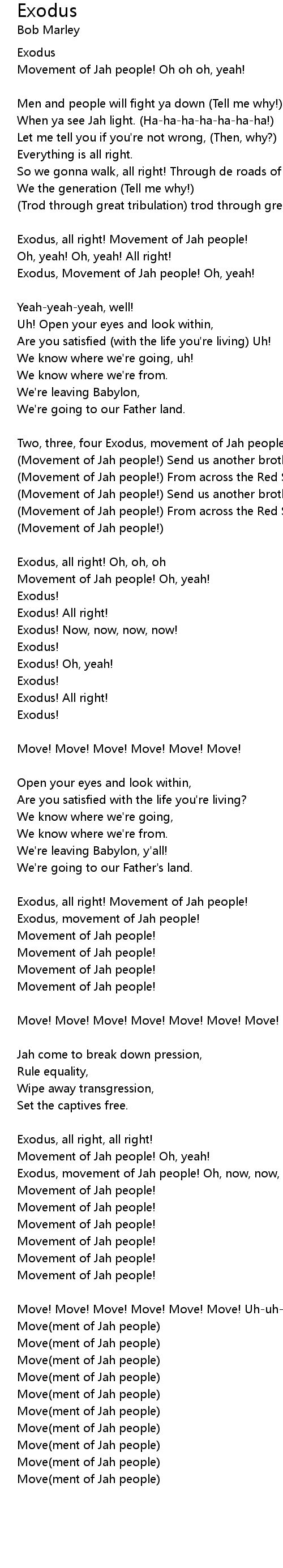 Exodus, all right! Movement of Jah people!