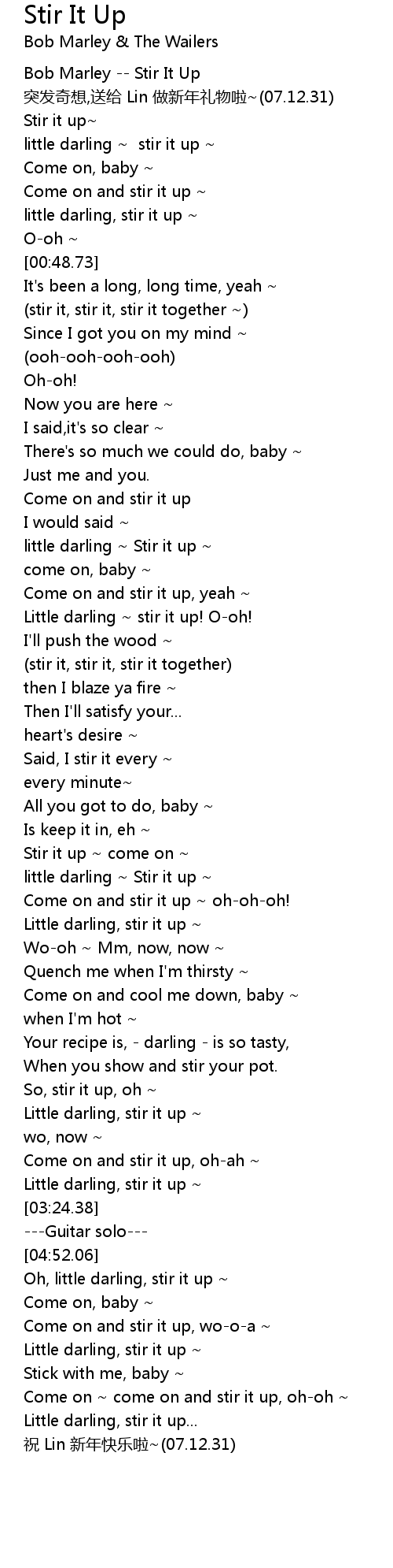 | [01:20.57] | little darling ~ Stir it up ~ |