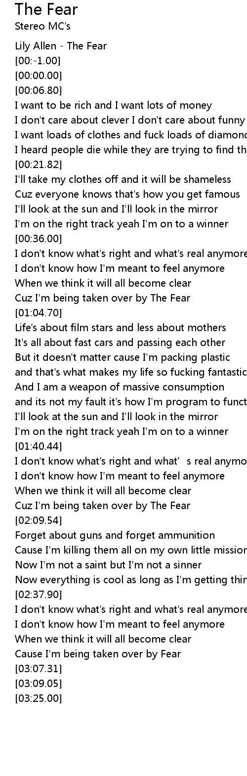 | [00:-2.00] | Lily Allen The Fear |
