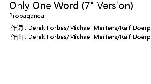 | [00:00.000] | 作词 : Derek Forbes/Michael Mertens/Ralf Doerper/Elizabeth Miller |