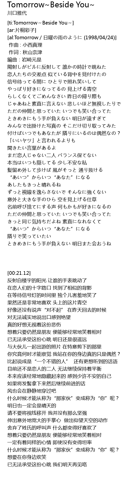 | [ti:Tomorrow~Beside You~] | |