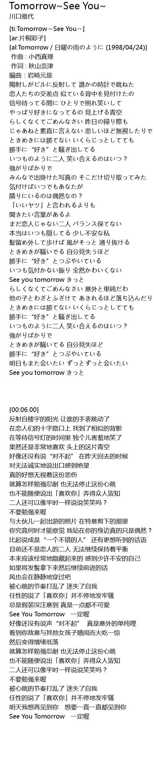 | [03:21.35] | See You Tomorrow 一定喔 |