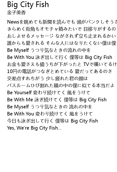 | 今日も泳ぎ出して行く 僕等は Big City Fish | |