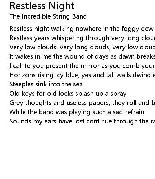 Restless night walking nowhere in the foggy dew |