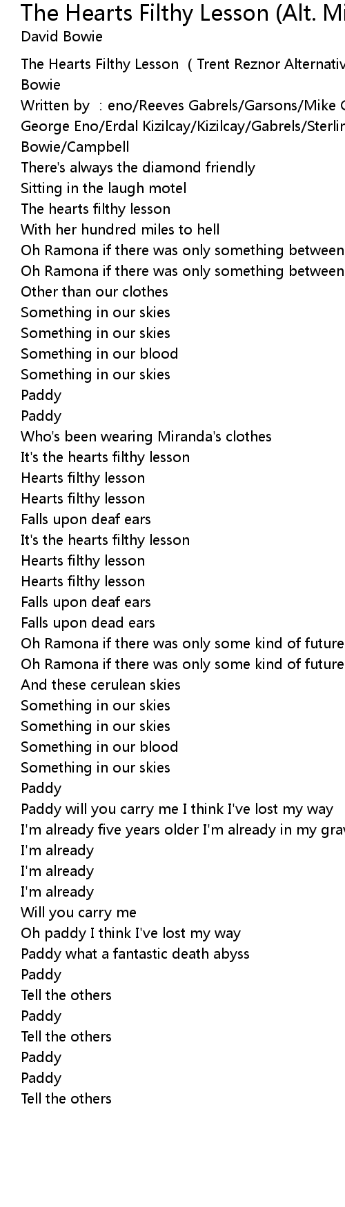 | [00:00.70] | The Hearts Filthy Lesson Trent Reznor Alternative Mix David Bowie |