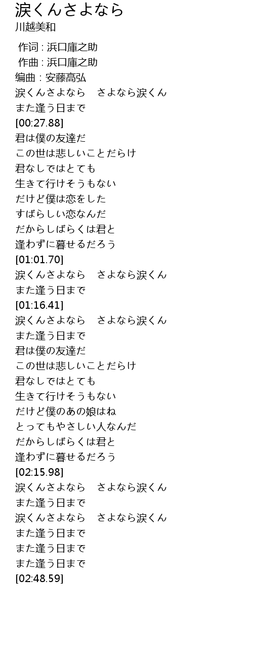 | [02:28.75] | 涙くんさよなら さよなら涙くん |