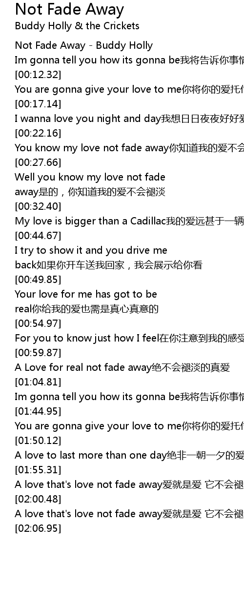 | [00:00.83] | Not Fade Away Buddy Holly |