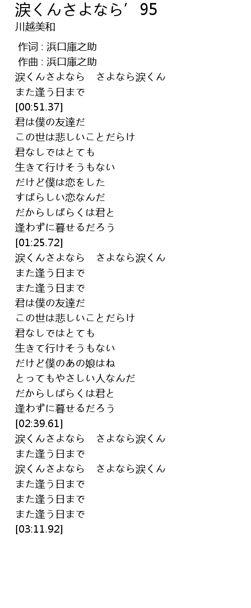 | [02:52.81] | 涙くんさよなら さよなら涙くん |